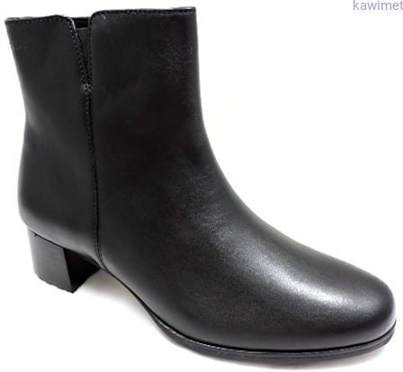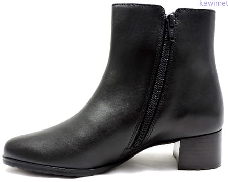 Klasyczne botki damskie nieocieplane na 40mm obcasie. Cholewka wykonana ze skóry licowej. Wkładka nie wyjmowana.