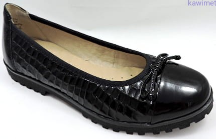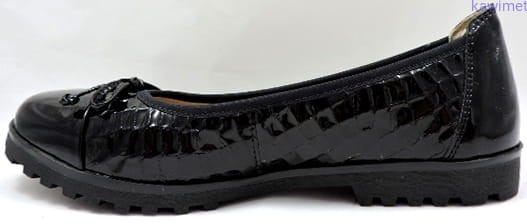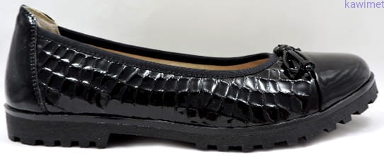 Bardzo wygodne baleriny damskie na grubszej podeszwie. Cholewka wykonana ze skóry lakierowanej. Miękka wkładka ( niewyjmowana) znacznie poprawia komfort użytkowania.