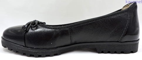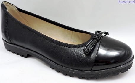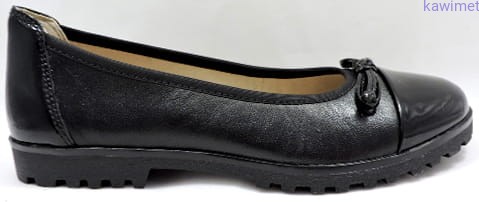 Bardzo wygodne baleriny damskie na grubszej podeszwie. Cholewka wykonana ze skóry licowej, nosek lakierowany. Miękka wkładka ( niewyjmowana) znacznie poprawia komfort użytkowania.