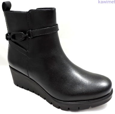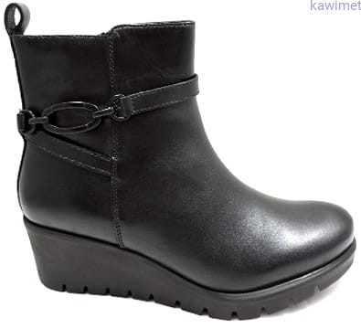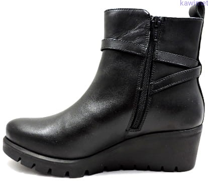 Wygodne botki damskie na 50mm koturnie z miękką wkładką profilowaną w poszerzonej tęgości H. Cholewka wykonana ze skóry licowej. Lekko ocieplane.