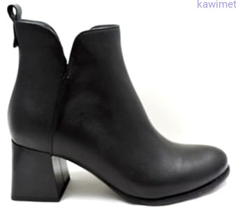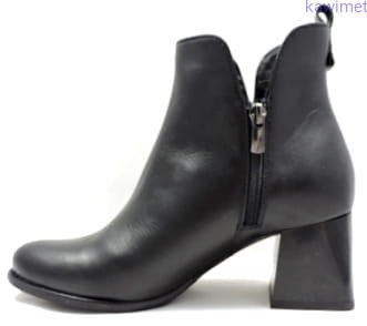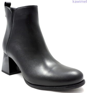 Botki damskie na stabilnym obcasie (6 mm), zapinane na suwak. Cholewka wykonana ze skóry licowej. Lekko ocieplane.