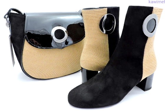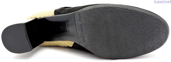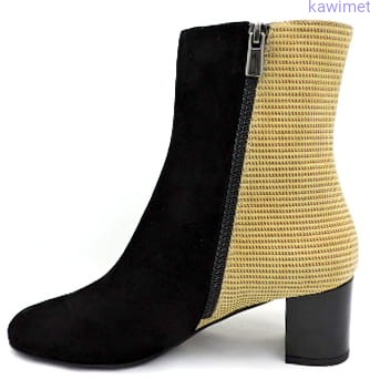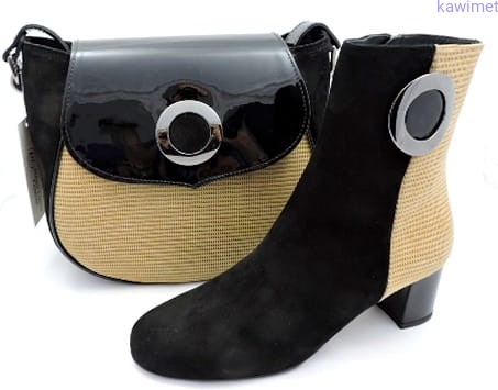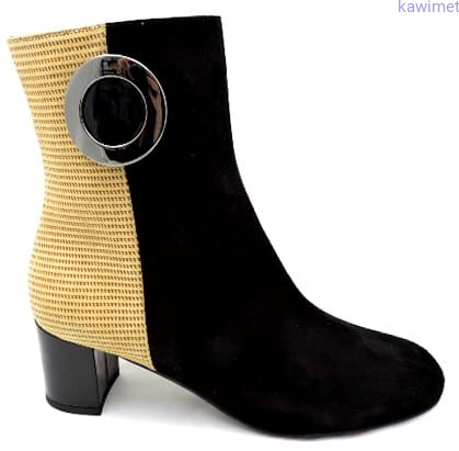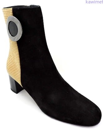 Niepowtarzalne botki damskie na stabilnym obcasie - 5,5 cm. Cholewka wykonana ze skóry zamszowej. Elegancka dekoracja.