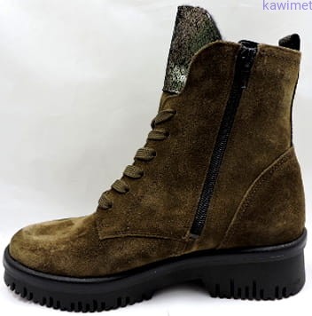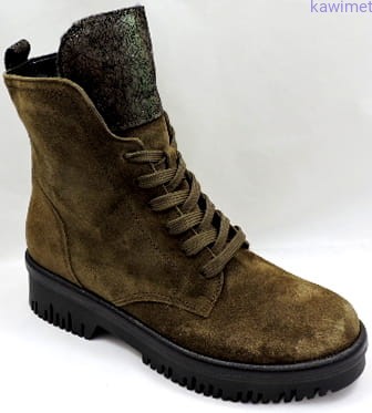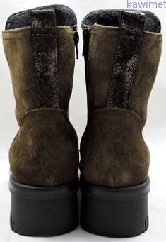 Bardzo lekkie botki damskie ocieplane na grubej podeszwie w poszerzonej tęgości H. Cholewka wykonana ze skóry zamszowej. Suwak od wewnętrznej strony ułatwia wkładanie. Wkładka profilowana z możliwością wyjęcia.