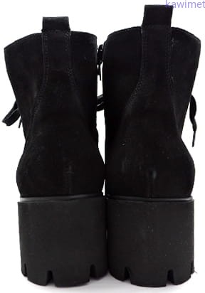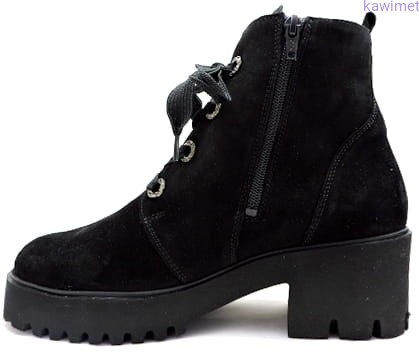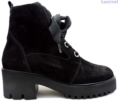Bardzo lekkie botki damskie ocieplane na grubej podeszwie w poszerzonej tęgości K. Cholewka wykonana ze skóry zamszowej. Suwaki od wewnętrznej strony ułatwiają wkładanie. Wkładka profilowana z możliwością wyjęcia.