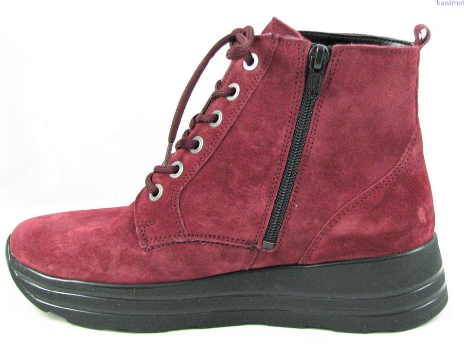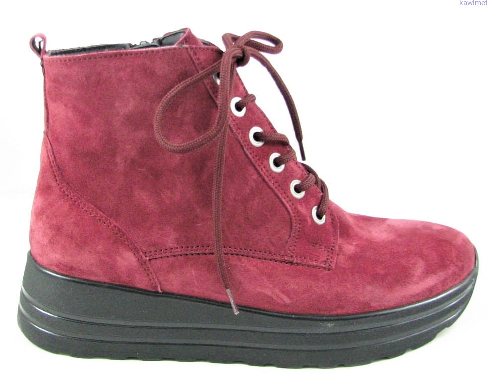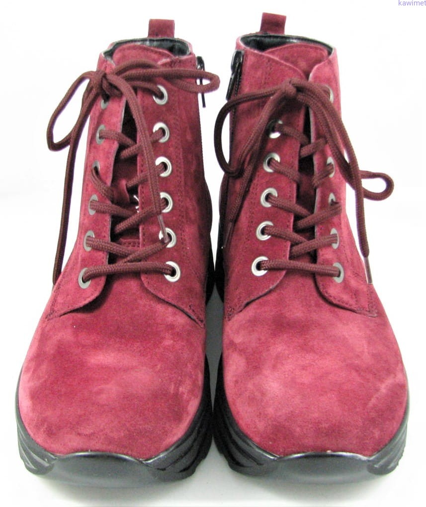 Lekkie botki damskie w poszerzonej tęgości z wyjmowaną profilowaną wkładką. Cholewka wykonana ze skóry zamszowej. Podeszwa amortyzująca i antypoślizgowa. Ocieplane, na suwak i sznurowane.