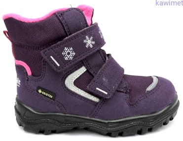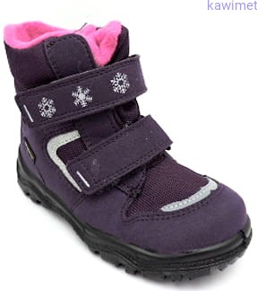 Ocieplane botki dziewczęce na rzepy z membraną gore-tex, która zapewnia wodoodporność i bardzo dobrze odprowadza wilgoć. Podeszwa elastyczna i antypoślizgowa, poprawia komfort podczas chodzenia. Modne połączenie kolorów fioletowego i srebrnego.