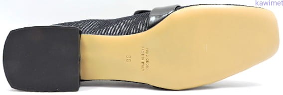 Czółenka damskie na niskim obcasie włoskiej marki Donna Laura Venezia. Cholewka wykonana ze skóry połączonej z tkaniną. Perforowane. Podeszwa skórzana.