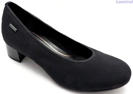 Klasyczne czółenka na wygodnym 35mm obcasie. Cholewka wykonana z miękkiej, dopasowującej się do stopy tkaniny zabezpieczonej membraną Gore-tex, dzięki czemu but nie przemaka a jednocześnie oddycha. Bardzo miękka wkładka i elastyczna podeszwa znacząco poprawią komfort podczas chodzenia.
