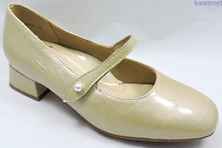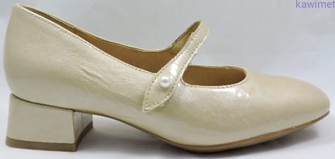 Klasyczne czółenka damskie na niewysokim 35mm obcasie z paskiem na podbiciu zapinanym na rzep, w poszerzonej tęgości H. Cholewka wykonana ze skóry lakierowanej. Bardzo miękka wkładka zapewni komfort podczas użytkowania.