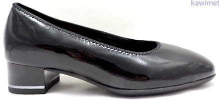 Czółenka damskie na niewysokim 35mm obcasie w poszerzonej tęgości H. Cholewka wykonana ze skóry lakierowanej. Bardzo miękka wkładka i elastyczna podeszwa poprawią komfort użytkowania.