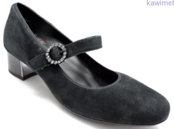 Wygodne czółenka damskie na 35mm obcasie. Paseczek trzymający na podbiciu. Cholewka wykonana ze skóry zamszowej. Miękka, wyjmowana i profilowana wkładka poprawia komfort użytkowania.