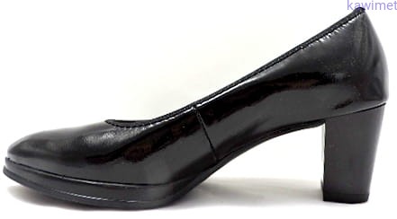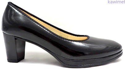 Klasyczne czółenka damskie na stabilnym 50mm obcasie i 10mm platformie. Cholewka wykonana ze skóry lakierowanej. Bardzo miękka wkładka i elastyczna podeszwa zapewni komfort podczas chodzenia.