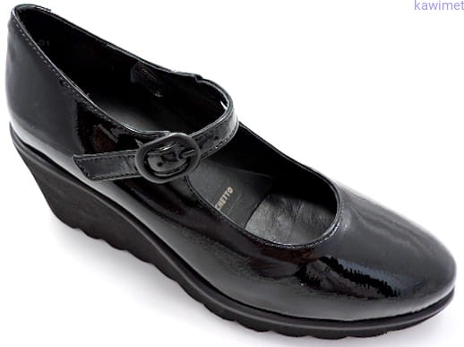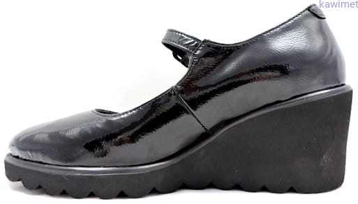 Czółenka damskie na koturnie 70mm z paskiem na podbiciu. Cholewka wykonana ze skóry lakierowanej. Bardzo miękka wkładka zapewnia komfort podczas chodzenia.