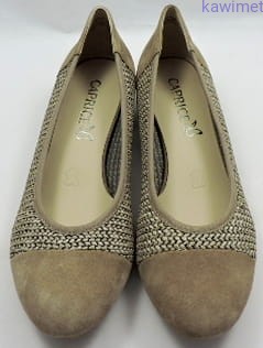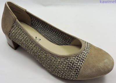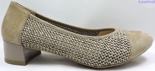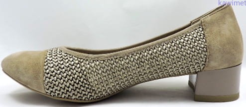 Eleganckie i klasyczne czółenka damskie wykonane z plecionego tworzywa z odciętym noskiem ze skóry zamszowej. Niewysoki i stabilny obcas 35mm. Wygodne i bardzo efektowne. Idealne do codziennego chodzenia.