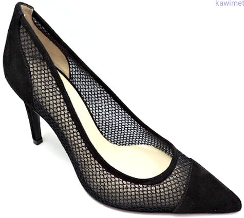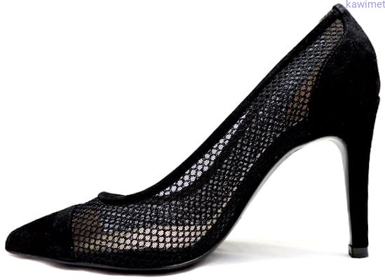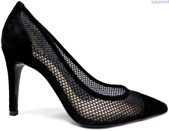 Bardzo eleganckie czółenka damskie na 95mm obcasie. Cholewka skóra, łączona z siatkową dzianiną syntetyczną na podeszwie skórzanej.