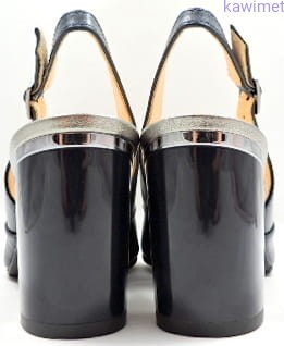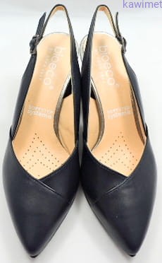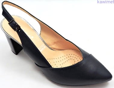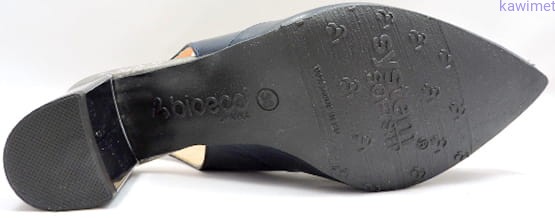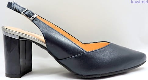 Eleganckie czółenka damskie letnie na 70mm obcasie z otwartą piętą. Cholewka wykonana ze skóry licowej.