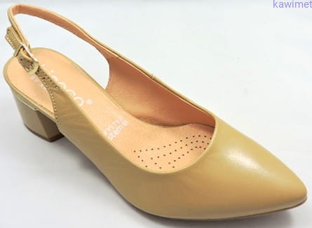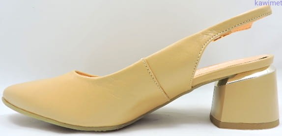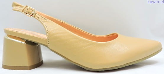 Eleganckie czółenka damskie letnie na 55mm obcasie z otwartą piętą. Cholewka wykonana ze skóry licowej.