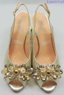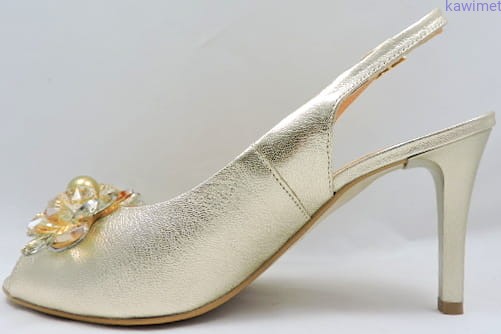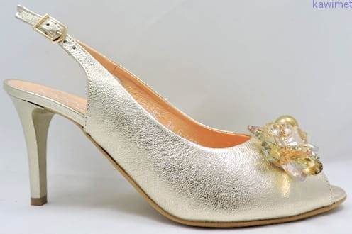 Eleganckie czółenka damskie letnie na 90mm obcasie z otwartą piętą i palcami. Cholewka wykonana ze skóry licowej. Oryginalna i strojna ozdoba.