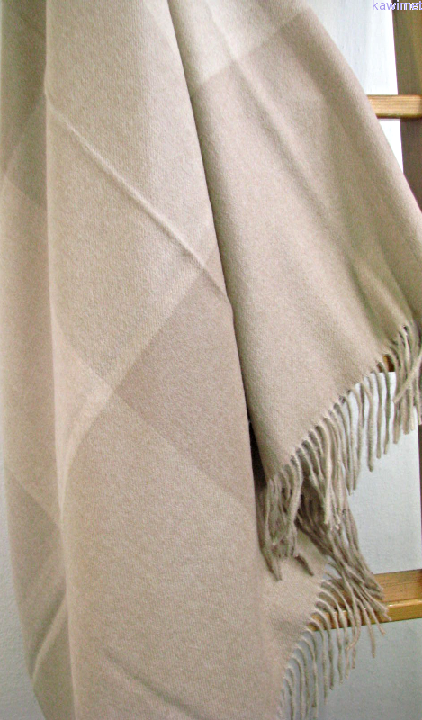 Delikatny, ciepły, aksamitny w dotyku koc z wełny baby alpaca. Cienki i bardzo lekki. Wzór w dużą kratę. Idealny na chłodne wieczory. Szczegółowy przepis prania na metce.