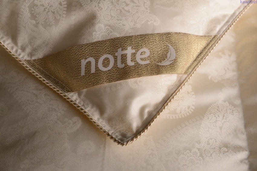 Produkty Notte Dolce to najbardziej prestiżowa kolekcja wyrobów pościelowych. Jedwabne poszycie zostało wypełnione ręcznie sortowanym puchem i obszyte plecioną lamówką w kolorze złotym. Wypełnienie, przy pomocy specjalnej selekcji pozwoliło uzyskać 93% puchu. Daje to uczucie lekkości, sprężystości i komfortu.