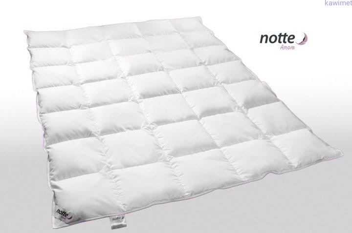 Kołdry Notte Amore zostały zaprojektowane i uszyte z miłości do spania. Odpowiednie dla osób wymagających precyzji w wykonaniu i komfortowej jakości użytkowania. Wypełnienie stanowi 90% puchu gęsiego, co gwarantuje odpowiednią izolację cieplną przy bardzo niskiej temperaturze. Kołdry pokryte są delikatnym batystem bawełnianym oraz wykończone białą bizą.