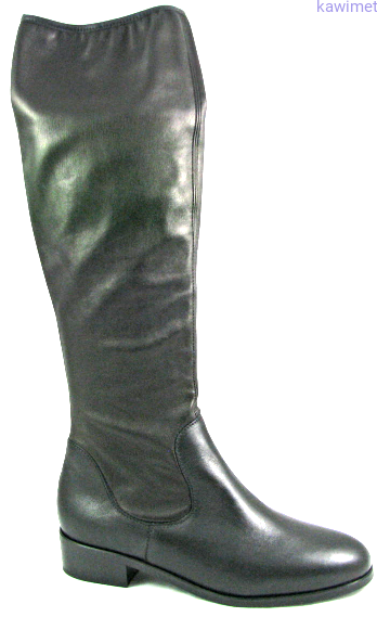 Kozaki damskie na stabilnym, niewysokim 3 cm obcasie. Cholewka wykonana z elastycznej skóry licowej, dzięki czemu kozaki dopasowują się do każdej tęgości łydki. Klasyczny, ponadczasowy kształt oficerek.
