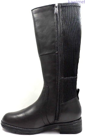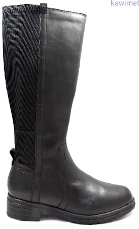 Klasyczne i lekkie kozaki damskie na grubszej podeszwie. Cholewka wykonana za skóry licowej połączonej ze streczem, dzięki czemu lepiej dopasowuje się do każdej tęgości łydki. Lekko ocieplane. Wkładka wyjmowana.