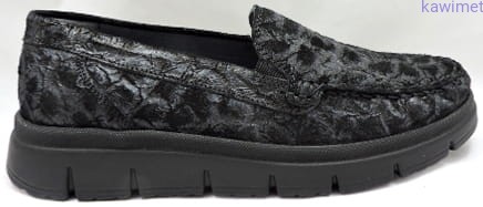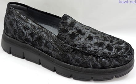 Bardzo wygodne mokasyny damskie na grubszej podeszwie w poszerzonej tęgości H. Cholewka wykonana ze skóry zamszowej. Wkładka profilowana z możliwością wyjęcia.