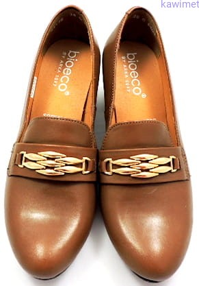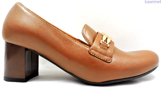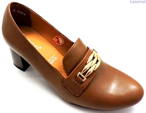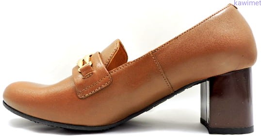 Eleganckie mokasyny damskie na 50mm obcasie. Cholewka wykonana ze skóry licowej. Delikatna ozdoba na podbiciu. Miękka wkładka i elastyczna podeszwa poprawia komfort użytkowania.
