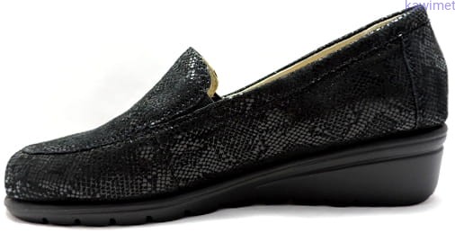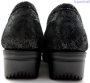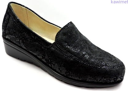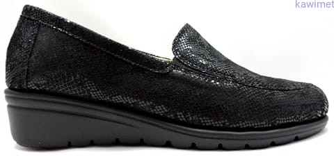 Bardzo wygodne mokasyny damskie na klinie. Cholewka wykonana ze skóry nubukowej tłoczonej. Miękka wkładka, poprawia komfort użytkowania.