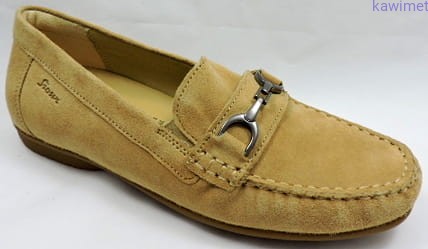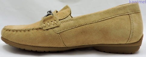 Klasyczne mokasyny damskie wykonane ze skóry zamszowej w poszerzonej tęgości H. Bardzo miękka wkładka z możliwością wyjęcia, znacząco poprawia komfort użytkowania.