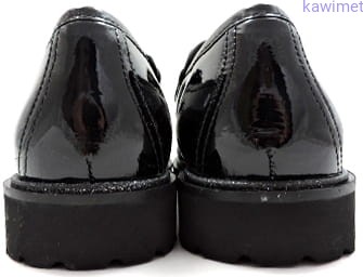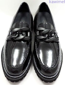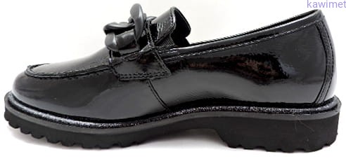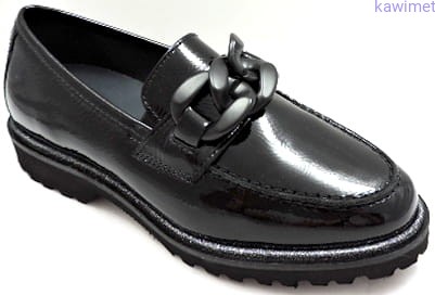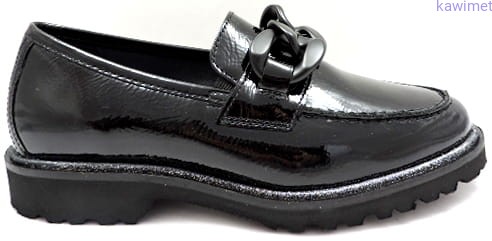 Bardzo wygodne i lekkie mokasyny damskie na grubszej podeszwie w poszerzonej tęgości H. Cholewka wykonana ze skóry lakierowanej. Wkładka wyjmowana.