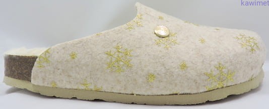 Bardzo wygodne obuwie domowe hiszpańskiej marki Genuins. Cholewka wykonana z wysokogatunkowej tkaniny z motywem gwiazdkowym. Wkładka miękka, ciepła i wyprofilowana zapewnia komfort użytkowania. Polecamy!