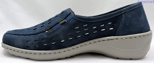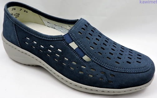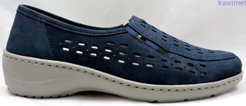 Bardzo wygodne i lekkie półbuty damskie w poszerzonej tęgości K. Cholewka perforowana, wykonana ze skóry nubukowej. Wyjmowana i profilowana wkładka poprawia komfort użytkowania.