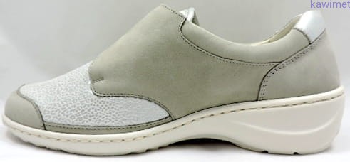 Bardzo wygodne półbuty damskie w poszerzonej tęgości K zapinane na rzep. Cholewka wykonana ze skóry nubukowej połączonej ze streczem. Miękka, wyjmowana i profilowana wkładka. Bardzo lekkie.