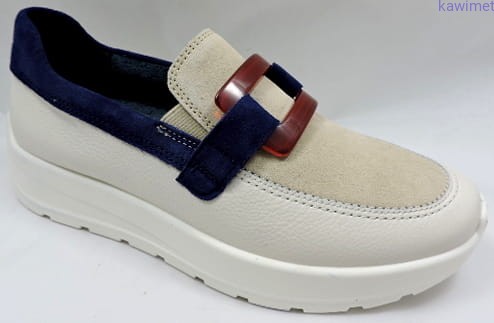 Lekkie półbuty damskie na sportowej podeszwie w poszerzonej tęgości H. Cholewka wykonana ze skóry licowej połączonej z zamszem. Wkładka profilowana z możliwością wyjęcia i amortyzująca podeszwa znacząco poprawią komfort. Cholewka doskonale dopasowuje się do stopy i nie powoduje żadnych ucisków.