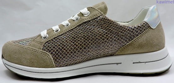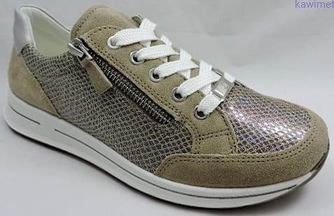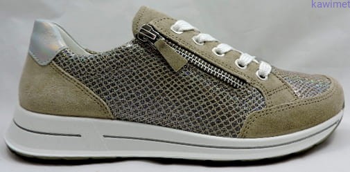 Półbuty damskie w poszerzonej tęgości H, wykonane ze skóry zamszowej i nubukowej . Suwak na podbiciu ułatwia wkładanie obuwia. Wyjmowana i profilowana wkładka poprawia komfort użytkowania.