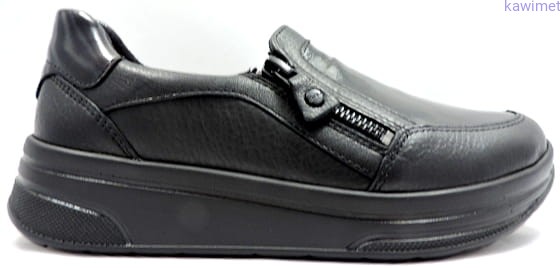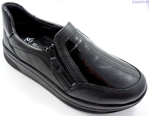 Wygodne półbuty damskie na sportowej podeszwie w poszerzonej tęgości H zapinane na suwak. Cholewka wykonana ze skóry licowej i lakierowanej. Wkładka profilowana i wyjmowana. Idealne na długie jesienne spacery.