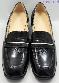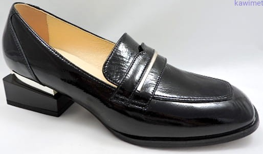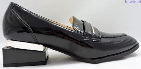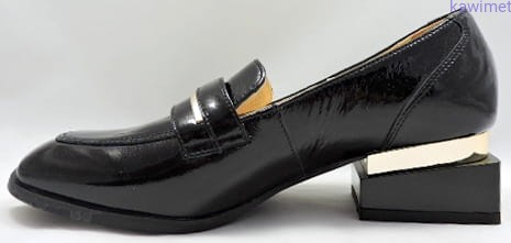 Eleganckie półbuty damskie na 45mm obcasie. Cholewka wykonana ze skóry lakierowanej. Miękka wkładka poprawia komfort użytkowania.