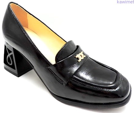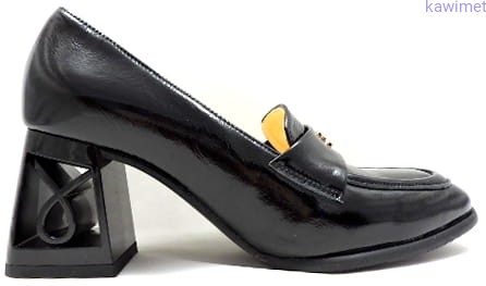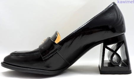 Eleganckie półbuty damskie na 70mm ozdobnym obcasie. Cholewka wykonana ze skóry lakierowanej. Miękka wkładka i elastyczna podeszwa poprawia komfort użytkowania.
