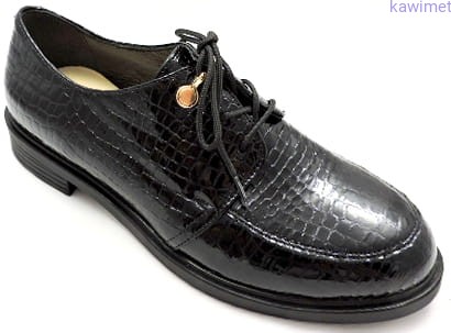 Bardzo wygodne klasyczne półbuty damskie. Cholewka wykonana ze skóry lakierowanej. Miękka wkładka poprawia komfort użytkowania.