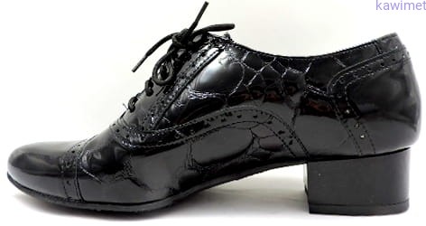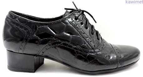 Bardzo wygodne klasyczne półbuty damskie na 30mm obcasie. Cholewka wykonana ze skóry lakierowanej tłoczonej. Miękka wkładka poprawia komfort użytkowania.