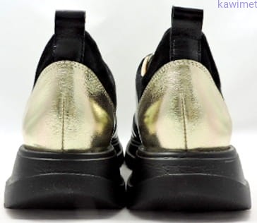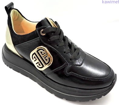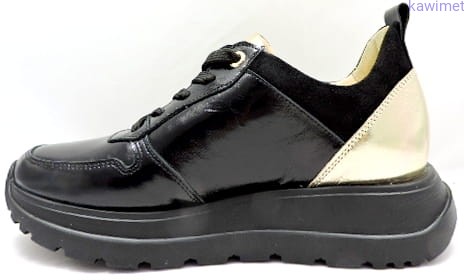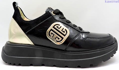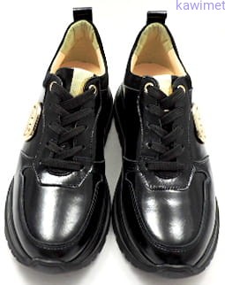 Bardzo wygodne półbuty damskie sportowe sznurowane. Cholewka wykonana ze skóry lakierowanej, złota wstawka na zapiętku. Miękka i wyjmowana wkładka poprawia komfort użytkowania.