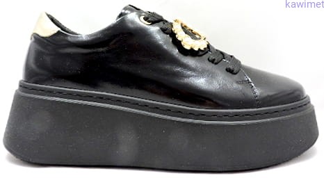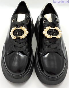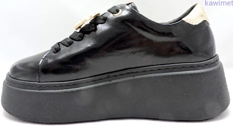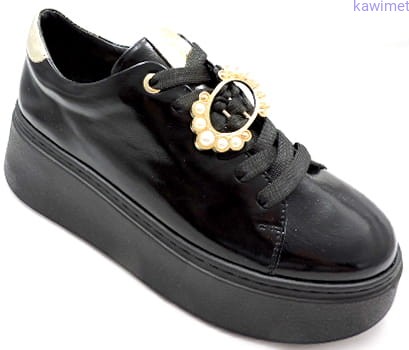 Bardzo wygodne półbuty damskie sznurowane na grubym spodzie. Cholewka wykonana ze skóry lakierowanej. Miękka i wyjmowana wkładka poprawia komfort użytkowania.