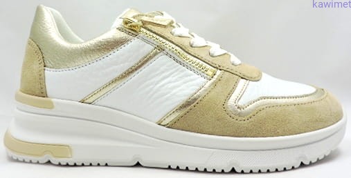 Sportowe półbuty damskie na grubszej i stabilnej podeszwie sznurowane. Suwak na podbiciu ułatwia wkładanie. Cholewka wykonana ze skóry licowej połączonej z nubukiem. Wkładka profilowana i wyjmowana. Wzór zgodny ze śladem stopy co czyni je bardzo wygodnymi.