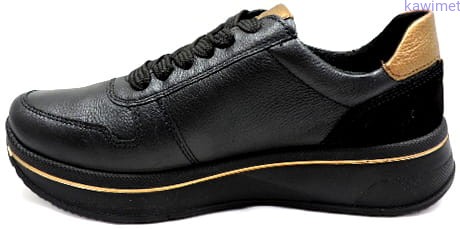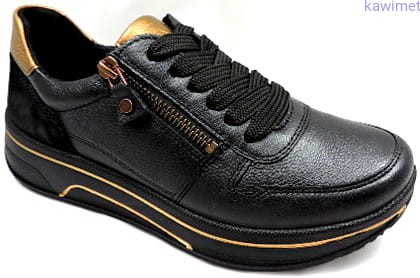 Sportowe półbuty damskie w poszerzonej tęgości H. Suwak na podbiciu ułatwia wkładanie. Grubsza i stabilna podeszwa. Cholewka wykonana ze skóry licowej. Wzór zgodny ze śladem stopy co czyni je bardzo wygodnymi.