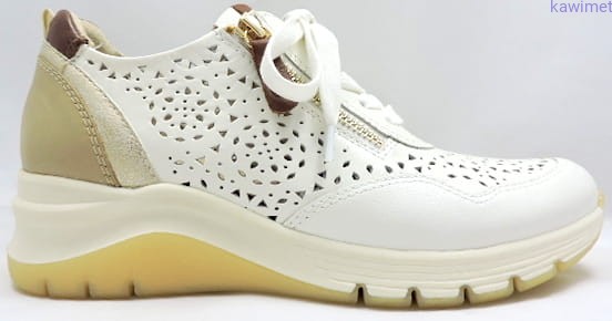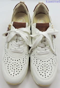 Bardzo wygodne półbuty damskie perforowane na lekkiej koturnie, sznurowane. Dodatkowy suwak na podbiciu ułatwia wkładanie. Cholewka wykonana ze skóry licowej. Wkładka lekko profilowana, miękka i wyjmowana. Podeszwa antypoślizgowa.