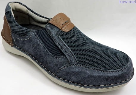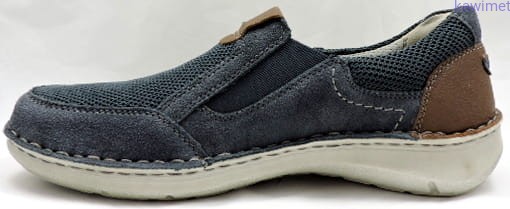 Bardzo wygodne półbuty męskie w poszerzonej tęgości H. Cholewka wykonana ze skóry zamszowej w połączeniu z tkaniną. Gumki na podbiciu ułatwiają wkładanie. Wyjmowana wkładka znacząco poprawia komfort użytkowania.