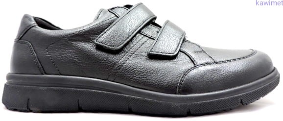 Bardzo wygodne półbuty męskie w poszerzonej tęgości K zapinane na rzepy. Obuwie tej marki ma roślinnie garbowane skóry, dzięki czemu mogą je nosić osoby z cukrzycą. Cholewka wykonana ze skóry licowej groszkowanej połączonej ze streczem. Wkładka wyprofilowana na naturalnym korku z możliwością wyjęcia. Polecamy na chore i zmęczone stopy!