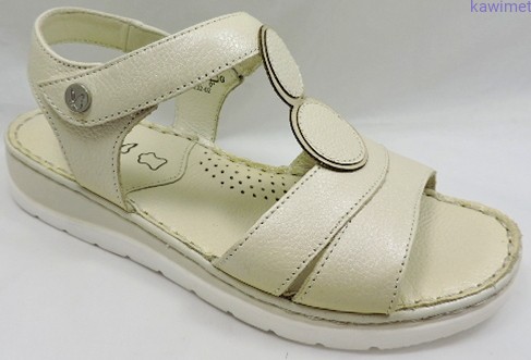 Bardzo lekkie i wygodne sandały damskie zapinane na rzep. Cholewka wykonana ze skóry licowej. Miękka wkładka poprawia komfort użytkowania. Delikatnie wyglądają na stopie.